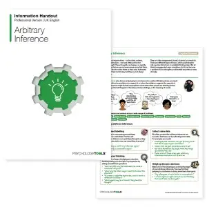 Willkürliche Schlussfolgerung ist eine der frühesten und umfassendsten kognitiven Verzerrungen, die in der kognitiven Verhaltenstherapie (CBT) beschrieben werden. Aaron T. Beck definiert es als „den Prozess der Bildung einer Interpretation einer Situation, eines Ereignisses oder einer Erfahrung, wenn es keine sachlichen Beweise gibt, die die Schlussfolgerung stützen, oder wenn die Schlussfolgerung im Widerspruch zu den Beweisen steht“. Der Willkürliche Schlussfolgerung Das Informationshandout ist Teil der Serie „Kognitive Verzerrungen“, die Klienten und Therapeuten helfen soll, effektiver mit häufigen Denkvorurteilen umzugehen.