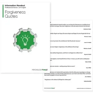 Jeder erlebt zwischenmenschliche Verletzungen, wie zum Beispiel Unterlassungen (z. B. Vernachlässigung) und Taten (z. B. absichtliche oder unbeabsichtigte Schädigung). Menschen reagieren auf diese Übertretungen auf unterschiedliche Weise, z. B. indem sie Gerechtigkeit oder Rache suchen, das Vergehen loslassen oder sich dafür entscheiden, dem Übeltäter zu vergeben. Aufgrund häufiger Missverständnisse fällt es Klienten oft schwer, das Konzept der Vergebung zu verstehen. Der Zitate zur Vergebung Das Informationshandout enthält eine hilfreiche Auswahl an Zitaten zum Thema Vergebung, um zu verstehen, worum es bei Vergebung wirklich geht. Zu den Zitaten gehört: „Vergeben ist die höchste und schönste Form der Liebe.“ Im Gegenzug erhalten Sie unbeschreiblichen Frieden und Glück. (Robert Müller).