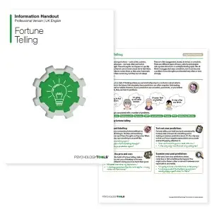 Kognitive Verzerrungen, auch kognitive Verzerrungen oder „nicht hilfreiche Denkstile“ genannt, beziehen sich auf die spezifischen Arten, wie unsere Gedanken voreingenommen werden können (Beck, 1963). Eine solche Verzerrung ist die „Wahrsagerei“, bei der Einzelpersonen vorhersagen, dass bestimmte Ereignisse wahrscheinlich eintreten werden, ohne andere, wahrscheinlichere Ergebnisse zu berücksichtigen (Beck, 1995). Diese Verzerrung kann sich entweder als positive Wahrsagerei manifestieren, bei der jemand zukünftige Ereignisse optimistischer antizipiert, als die Realität vermuten lässt, oder als negative Wahrsagerei, bei der er zukünftige Ereignisse negativ vorhersagt, beispielsweise aus Angst vor Gefahr oder Misserfolg (Burns, 2020). Der Wahrsagerei Das Informationshandout ist Teil einer Serie über kognitive Verzerrungen, die Klienten und Therapeuten dabei helfen soll, effektiver mit häufigen Denkvorurteilen umzugehen.